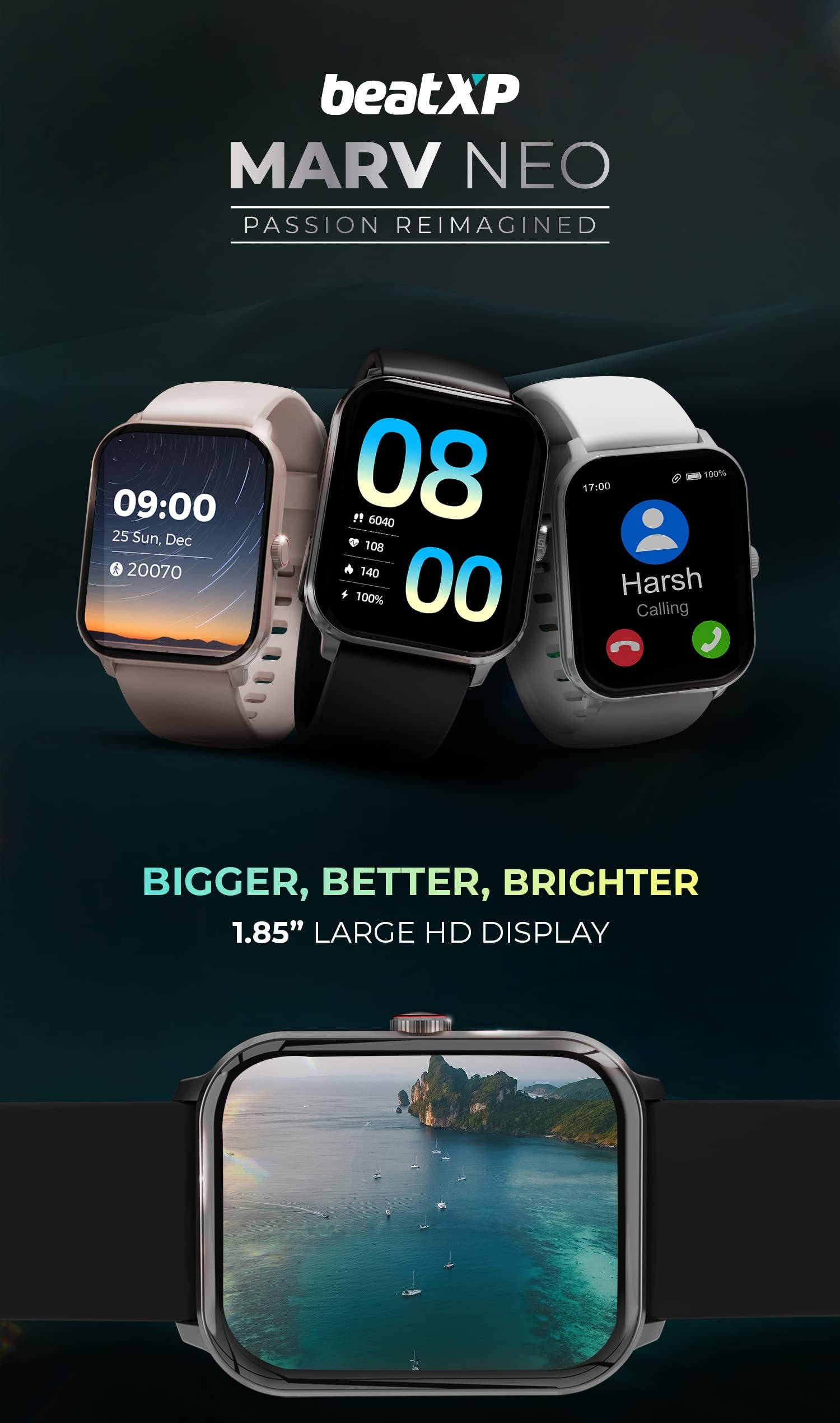 The beatXP Marv Neo will be priced at Rs 1,199 in India. The watch will come in Pink Gold, Black, and White colour options and will feature a crown for UI navigation. The beatXP Marv Neo will sport a 1.85-inch large display with fairly minimal bezels surrounding it, at least the promotional posters suggest so. The watch will feature Bluetooth calling support and will have an in-house EzyPair quick pair technology.