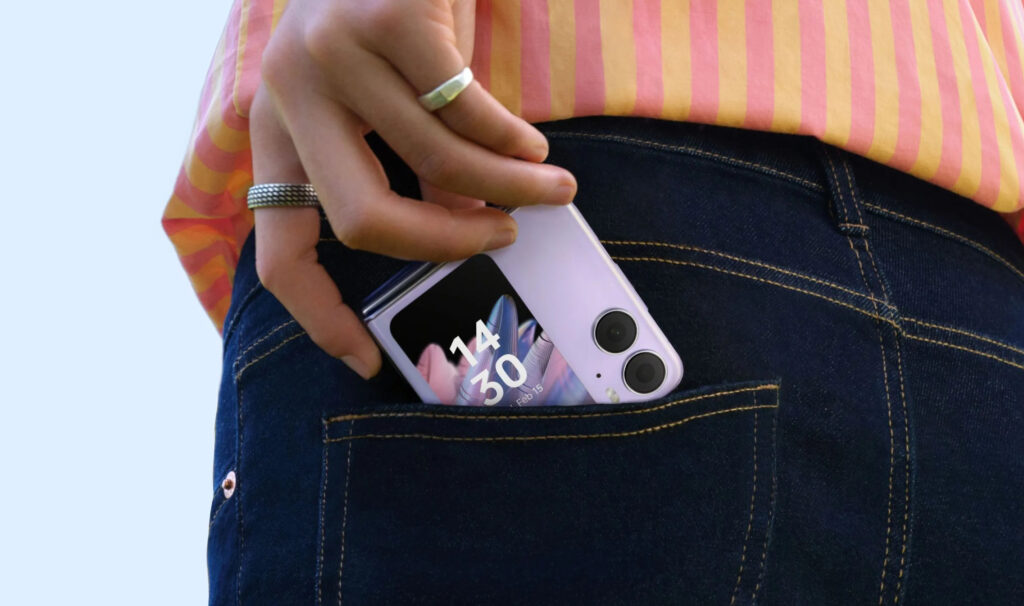 The OPPO Find N2 Flip features a flip-up design that reveals its folding display. The design is very reminiscent of flip phones of old and the overall design makes it a very compact smartphone. It also features the largest cover screen yet on a smartphone, letting users get the most out of the device without the need to constantly open the device.